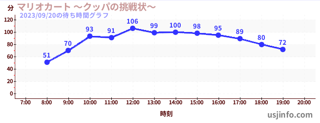 • マリオカート ~クッパの挑戦状~$B$N(B2023年09月20日の待ち時間