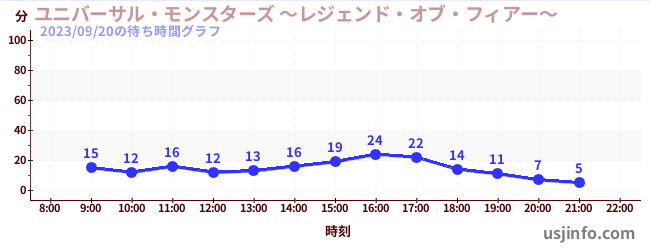 • ユニバーサル・モンスターズ ~レジェンド・オブ・フィアー~$B$N(B2023年09月20日の待ち時間