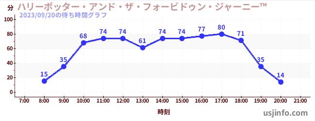 • ハリーポッター・アンド・ザ・フォービドゥン・ジャーニー™$B$N(B2023年09月20日の待ち時間