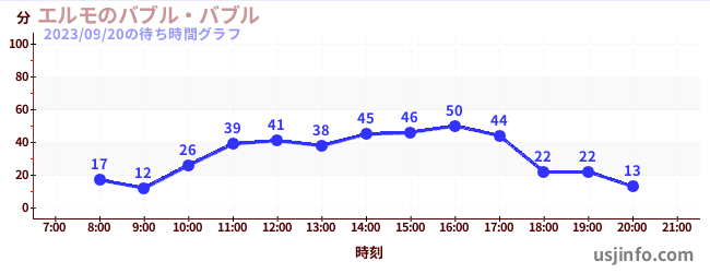 • エルモのバブル・バブル$B$N(B2023年09月20日の待ち時間