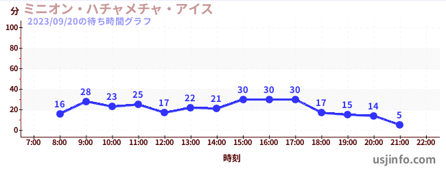 • ミニオン・ハチャメチャ・ライド$B$N(B2023年09月20日の待ち時間