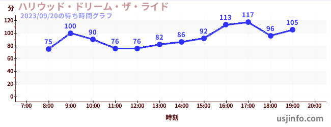 • ハリウッド・ドリーム・ザ・ライド$B$N(B2023年09月20日の待ち時間