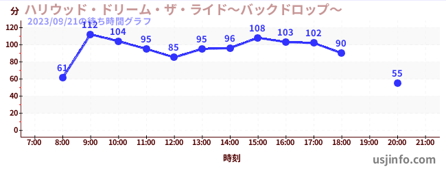 • ハリウッド・ドリーム・ザ・ライド〜バックドロップ〜$B$N(B2023年09月21日の待ち時間