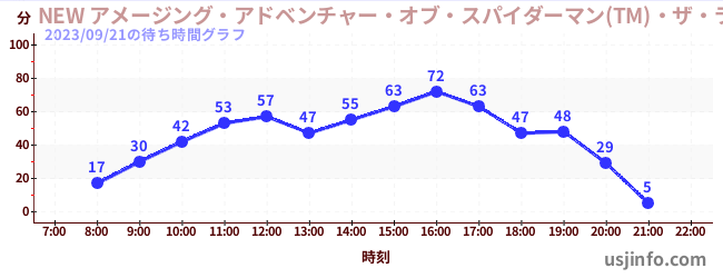 • NEW アメージング・アドベンチャー・オブ・スパイダーマン(TM)・ザ・ライド 4K3D$B$N(B2023年09月21日の待ち時間