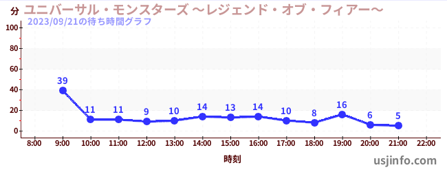 • ユニバーサル・モンスターズ ~レジェンド・オブ・フィアー~$B$N(B2023年09月21日の待ち時間