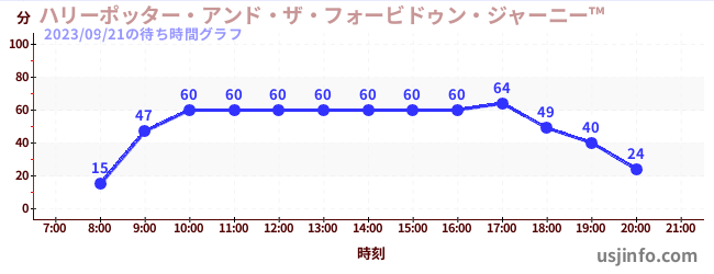 • ハリーポッター・アンド・ザ・フォービドゥン・ジャーニー™$B$N(B2023年09月21日の待ち時間