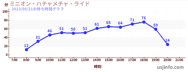 • ミニオン・ハチャメチャ・ライド$B$N(B2023年09月21日の待ち時間
