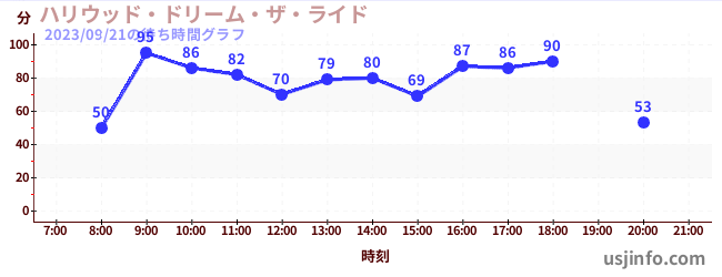 • ハリウッド・ドリーム・ザ・ライド$B$N(B2023年09月21日の待ち時間