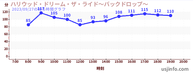 • ハリウッド・ドリーム・ザ・ライド〜バックドロップ〜$B$N(B2023年09月27日の待ち時間