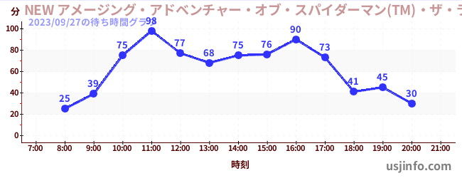 • NEW アメージング・アドベンチャー・オブ・スパイダーマン(TM)・ザ・ライド 4K3D$B$N(B2023年09月27日の待ち時間