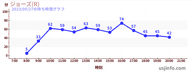 • ジョーズ(R)$B$N(B2023年09月27日の待ち時間