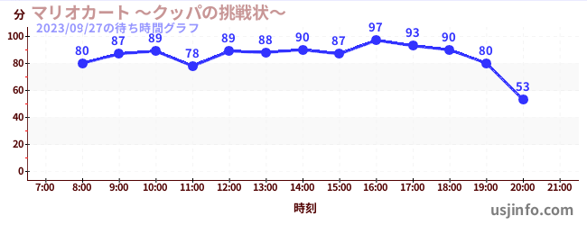 • マリオカート ~クッパの挑戦状~$B$N(B2023年09月27日の待ち時間