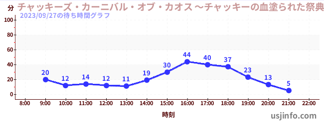 • チャッキーズ・カーニバル・オブ・カオス ~チャッキーの血塗られた祭典~$B$N(B2023年09月27日の待ち時間