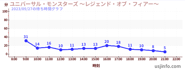 • ユニバーサル・モンスターズ ~レジェンド・オブ・フィアー~$B$N(B2023年09月27日の待ち時間