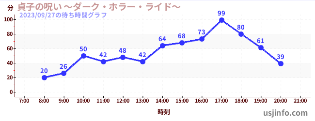 • 貞子の呪い ~ダーク・ホラー・ライド~$B$N(B2023年09月27日の待ち時間