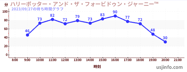 • ハリーポッター・アンド・ザ・フォービドゥン・ジャーニー™$B$N(B2023年09月27日の待ち時間
