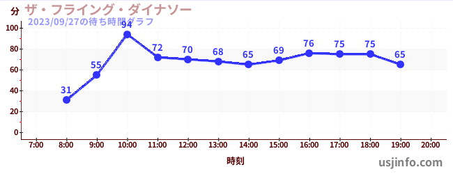 • ザ・フライング・ダイナソー$B$N(B2023年09月27日の待ち時間