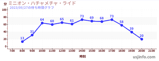 • ミニオン・ハチャメチャ・ライド$B$N(B2023年09月27日の待ち時間