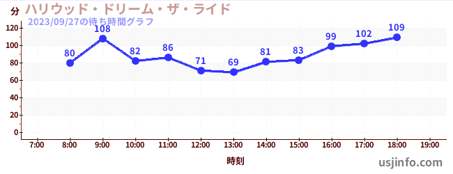 • ハリウッド・ドリーム・ザ・ライド$B$N(B2023年09月27日の待ち時間