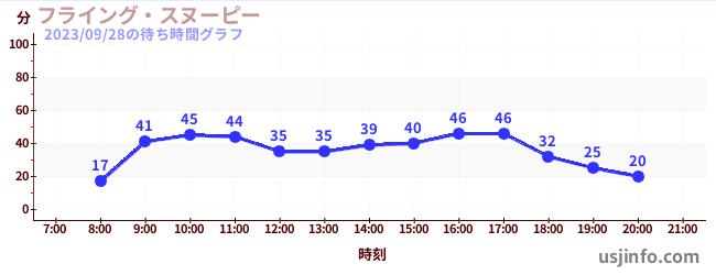 • フライング・スヌーピー$B$N(B2023年09月28日の待ち時間