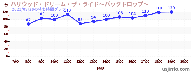 • ハリウッド・ドリーム・ザ・ライド〜バックドロップ〜$B$N(B2023年09月28日の待ち時間