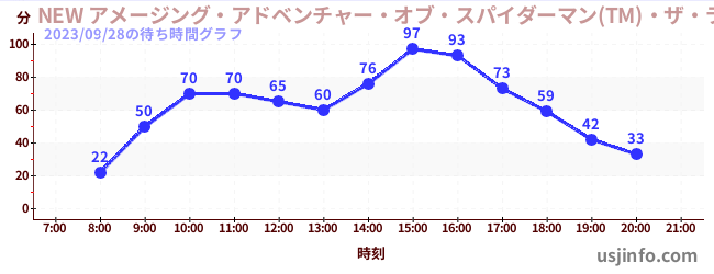 • NEW アメージング・アドベンチャー・オブ・スパイダーマン(TM)・ザ・ライド 4K3D$B$N(B2023年09月28日の待ち時間