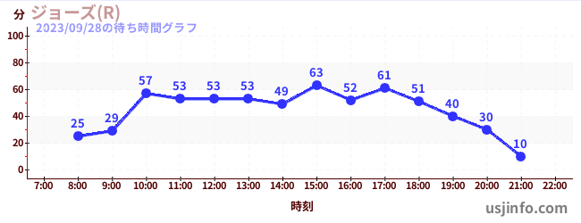 • ジョーズ(R)$B$N(B2023年09月28日の待ち時間