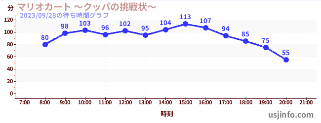 • マリオカート ~クッパの挑戦状~$B$N(B2023年09月28日の待ち時間