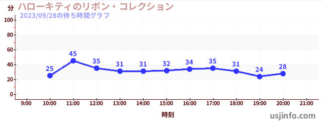 • ハローキティのリボン・コレクション$B$N(B2023年09月28日の待ち時間