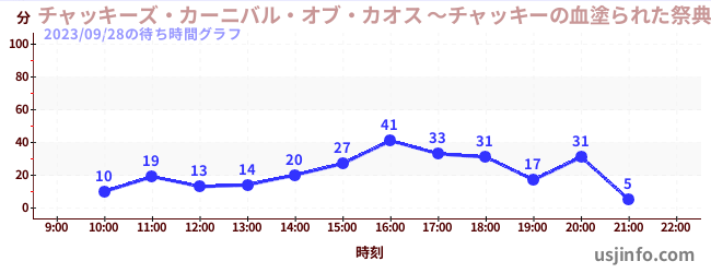 • チャッキーズ・カーニバル・オブ・カオス ~チャッキーの血塗られた祭典~$B$N(B2023年09月28日の待ち時間