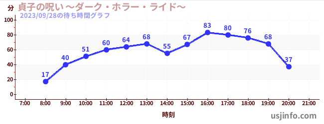 • 貞子の呪い ~ダーク・ホラー・ライド~$B$N(B2023年09月28日の待ち時間