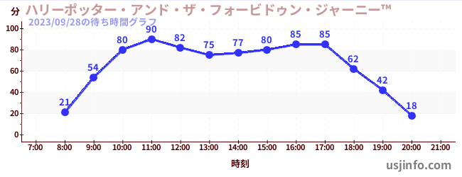 • ハリーポッター・アンド・ザ・フォービドゥン・ジャーニー™$B$N(B2023年09月28日の待ち時間
