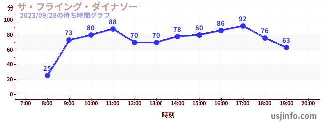 • ザ・フライング・ダイナソー$B$N(B2023年09月28日の待ち時間
