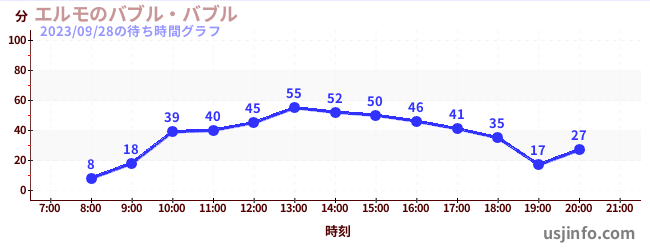 • エルモのバブル・バブル$B$N(B2023年09月28日の待ち時間