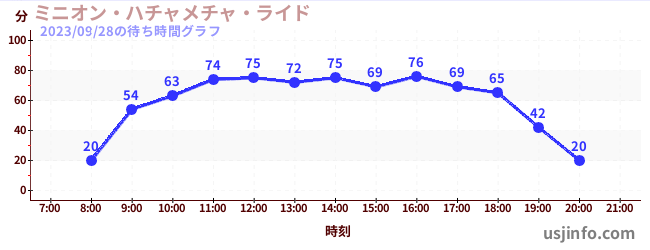 • ミニオン・ハチャメチャ・ライド$B$N(B2023年09月28日の待ち時間