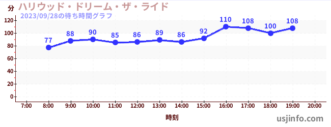 • ハリウッド・ドリーム・ザ・ライド$B$N(B2023年09月28日の待ち時間