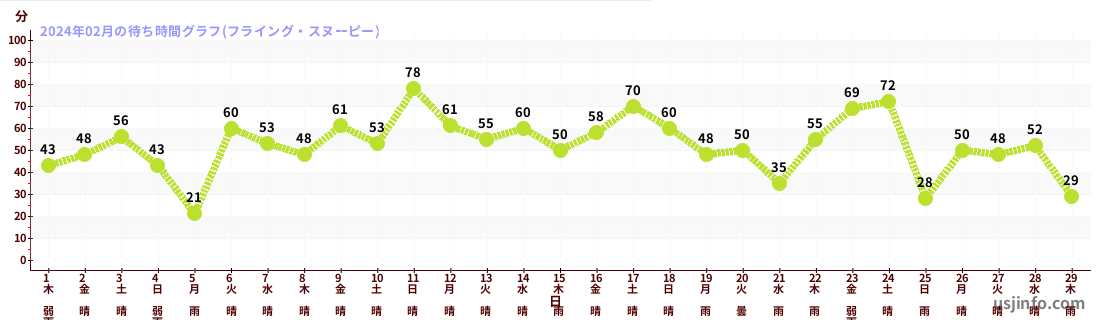 • フライング・スヌーピー$B$N(B2024年02月01日のの一日平均待ち時間