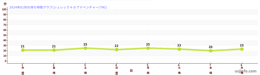 • シュレック 4-D アドベンチャー(TM)$B$N(B2024年02月01日のの一日平均待ち時間