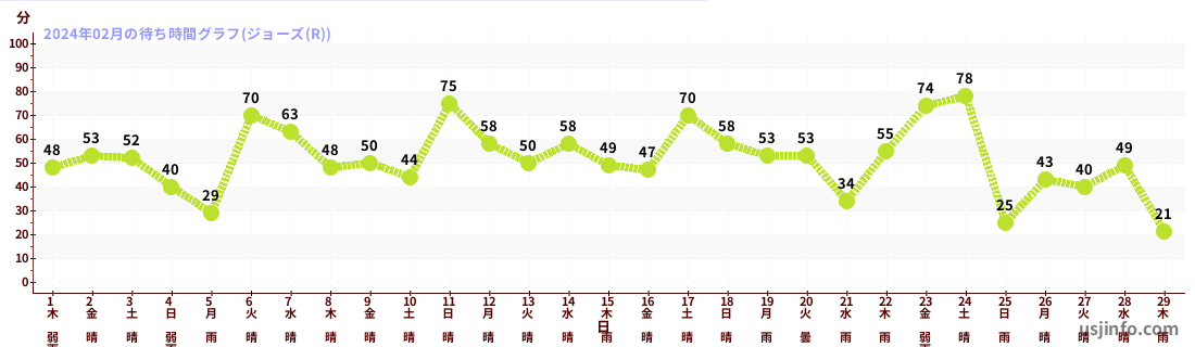 • ジョーズ(R)$B$N(B2024年02月01日のの一日平均待ち時間