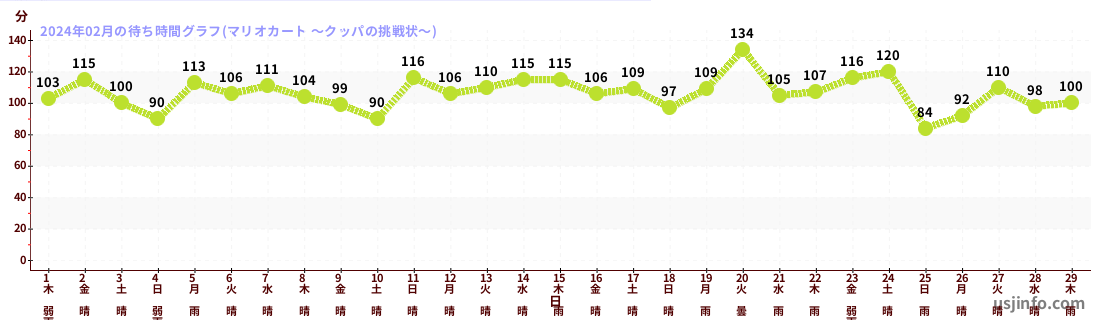 • マリオカート ~クッパの挑戦状~$B$N(B2024年02月01日のの一日平均待ち時間