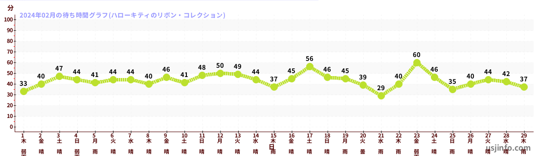 • ハローキティのリボン・コレクション$B$N(B2024年02月01日のの一日平均待ち時間