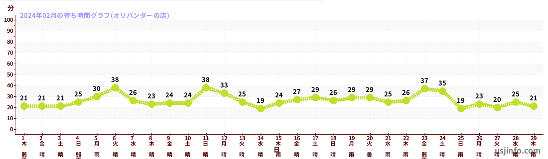 • オリバンダーの店$B$N(B2024年02月01日のの一日平均待ち時間