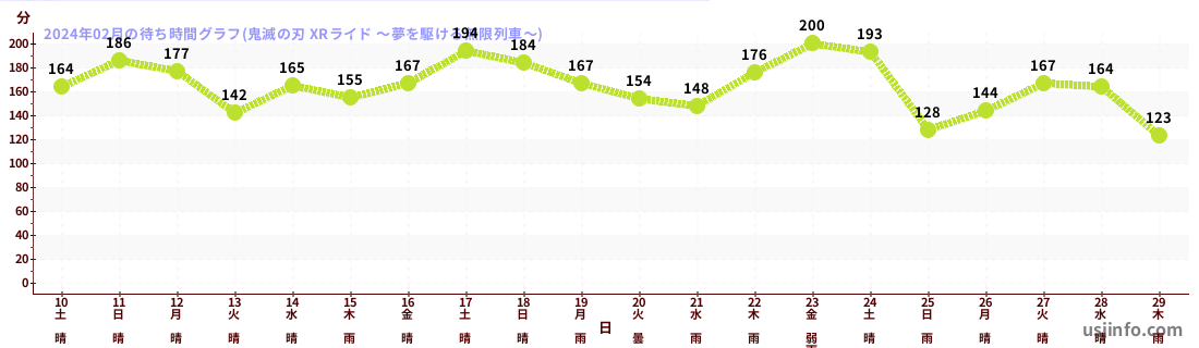• 鬼滅の刃 XRライド$B$N(B2024年02月01日のの一日平均待ち時間