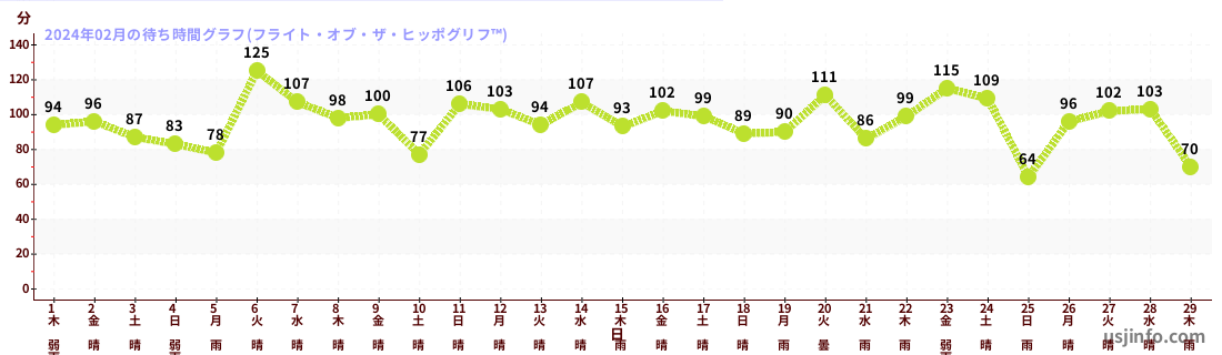 • フライト・オブ・ザ・ヒッポグリフ™$B$N(B2024年02月01日のの一日平均待ち時間
