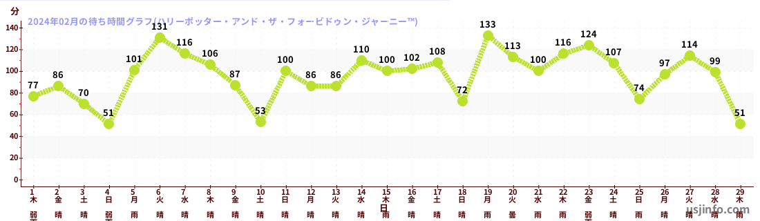 • ハリーポッター・アンド・ザ・フォービドゥン・ジャーニー™$B$N(B2024年02月01日のの一日平均待ち時間