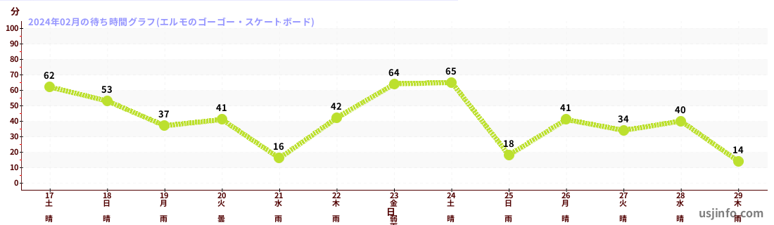 • エルモのゴーゴー・スケートボード$B$N(B2024年02月01日のの一日平均待ち時間