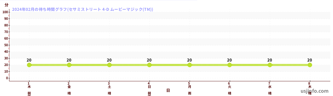 • セサミストリート 4-D ムービーマジック(TM)$B$N(B2024年02月01日のの一日平均待ち時間