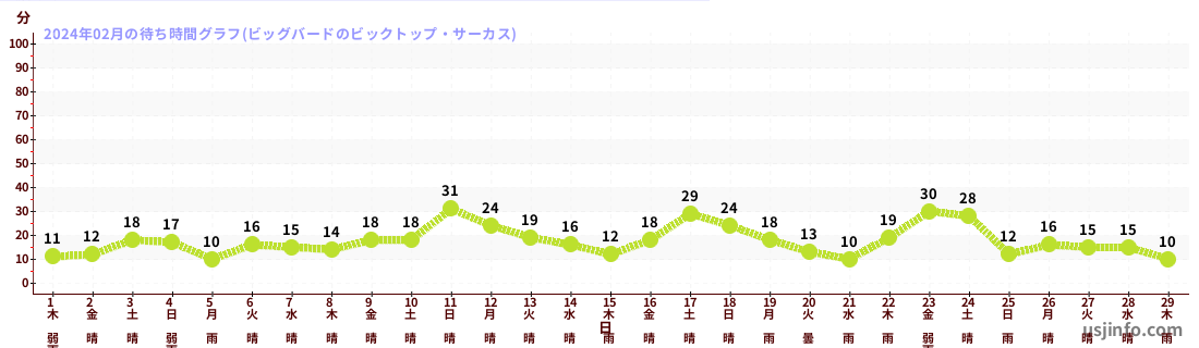 • ビッグバードのビックトップ・サーカス$B$N(B2024年02月01日のの一日平均待ち時間
