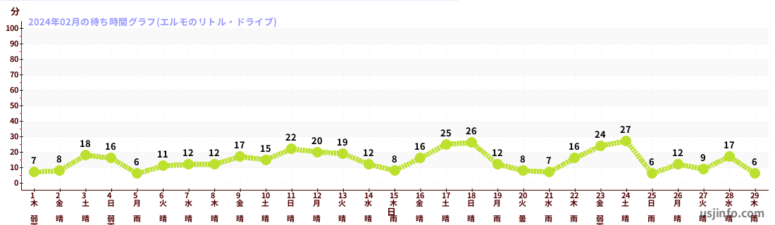 • エルモのリトル・ドライブ$B$N(B2024年02月01日のの一日平均待ち時間