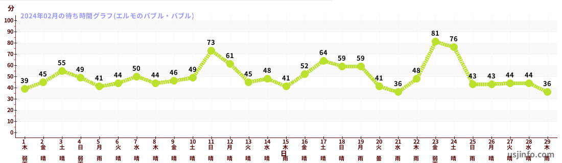 • エルモのバブル・バブル$B$N(B2024年02月01日のの一日平均待ち時間